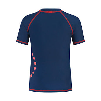 Blue/ fluoro red short-sleeved rash top