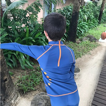 We think our rash vests look great on both boys and girls. We selected our colours deliberately to appeal to all children, and this has the extra benefit that you can pass swimwear between siblings. If there isn’t a photo of a gender in our rash vests, don’t assume that it isn’t “meant” for that gender.