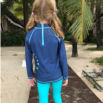 Blue/ turquoise long-sleeved rash top (zipped)