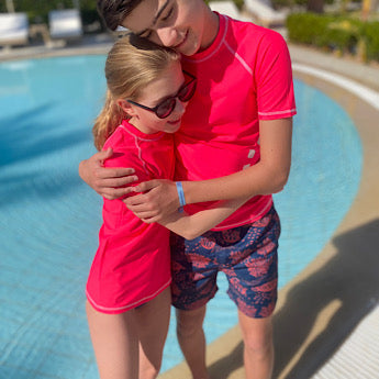 We design our swimwear to be skin fit on an average child within the older year within each range (eg 7 within 6/7y), so if in doubt, we recommend that you go a size up.