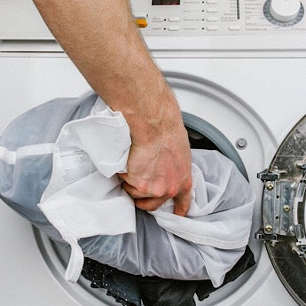 Made from 100% polyamide. Do not iron. Do not tumble dry. Air dry.�Every few washes, collect the fibres that have become caught up in the hems of the bag and put them in a bin. Do not rinse them down the sink! When using the GuppyFriend bag, do not fill more than half full.�