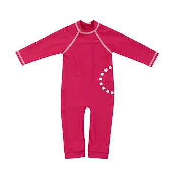 Magenta/ white long-sleeved baby all-in-one swimsuit