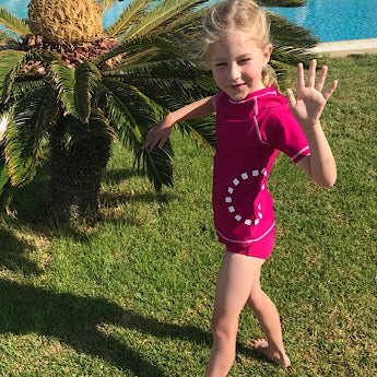 We design our swimwear to be skin fit on an average child within the older year within each range (eg 7 within 6/7y), so if in doubt, we recommend that you go a size up.