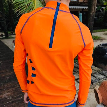 We give you the choice! Feedback tends to suggest that zips are great for younger children who often have proportionately larger heads, so you can get the rash vests on and off easily, but some children don’t like the fuss of a zip. It’s very much a personal preference. If you do go for a zip, these are designed for the zip to be at the back, not the front.