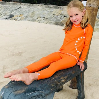 We design our swimwear to be skin fit on an average child within the older year within each range (eg 7 within 6/7y), so if in doubt, we recommend that you go a size up.