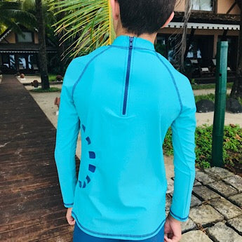 We give you the choice! Feedback tends to suggest that zips are great for younger children who often have proportionately larger heads, so you can get the rash vests on and off easily, but some children don’t like the fuss of a zip. It’s very much a personal preference. If you do go for a zip, these are designed for the zip to be at the back, not the front.
