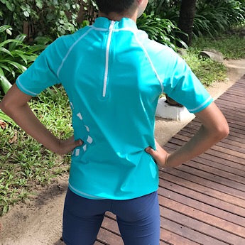 We give you the choice! Feedback tends to suggest that zips are great for younger children who often have proportionately larger heads, so you can get the rash vests on and off easily, but some children don’t like the fuss of a zip. It’s very much a personal preference. If you do go for a zip, these are designed for the zip to be at the back, not the front.