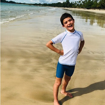 We think our rash vests look great on both boys and girls. We selected our colours deliberately to appeal to all children, and this has the extra benefit that you can pass swimwear between siblings. If there isn’t a photo of a gender in our rash vests, don’t assume that it isn’t “meant” for that gender.