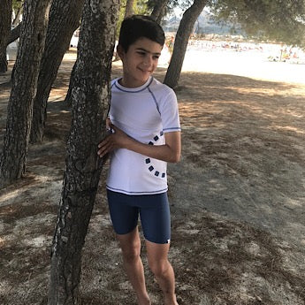 We design our swimwear to be skin fit on an average child within the older year within each range (eg 7 within 6/7y), so if in doubt, we recommend that you go a size up.